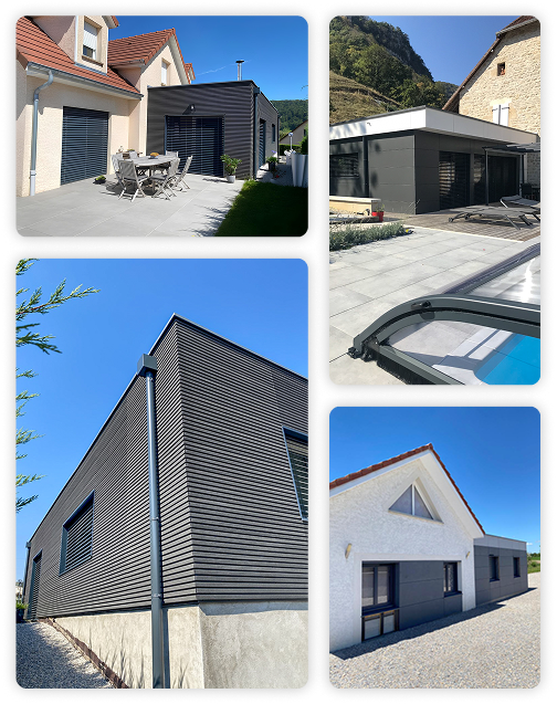 Cette extension à toit plat a été réalisée dans le Jura, proche de nos locaux, à 40 minutes de Saint-Vit. La solution de plaque contraste avec la maison de nos clients, et la toiture plate apporte également une touche de moderne et contemporaine.