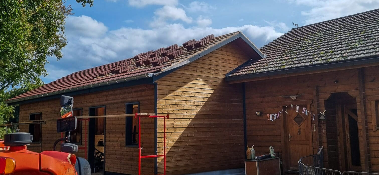 La couverture en tuiles vient parfaire cette extension bois. Elle complète parfaitement cette extension en bois. Ce choix classique s’accorde bien avec les maisons voisines et s’intègre naturellement dans le paysage de Lavernay.