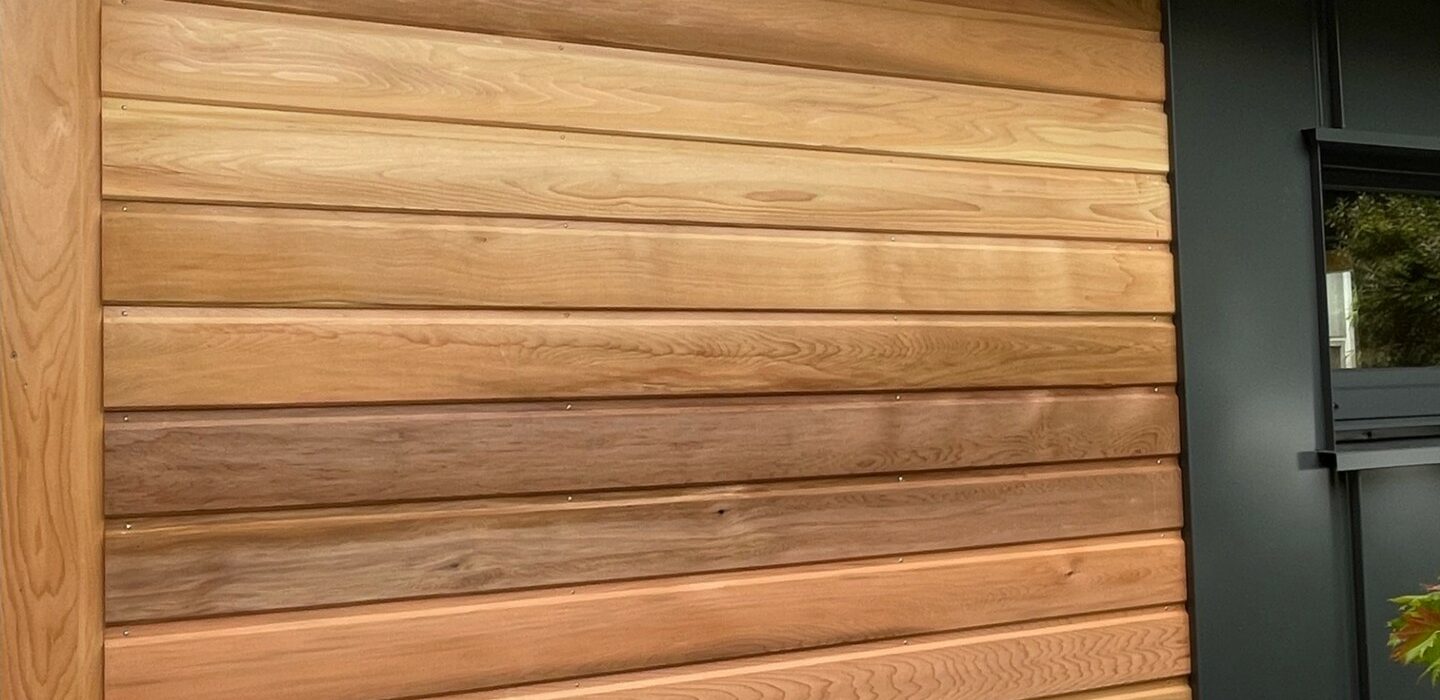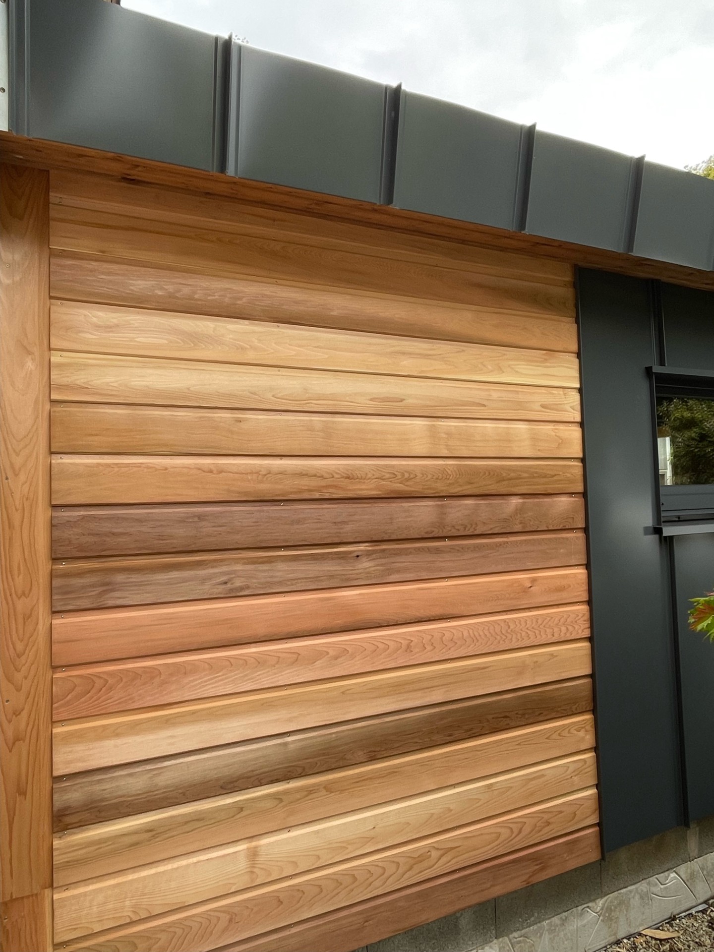 . Autres façades : Bardage en Red Cedar (Qualité 1er choix), profil type « élégie biaisée »